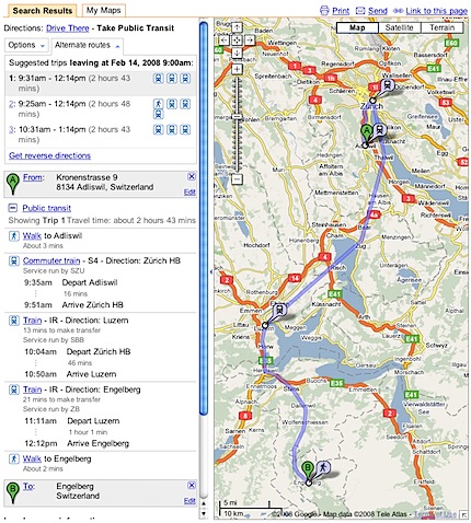 Google Transit includes Switzerland
